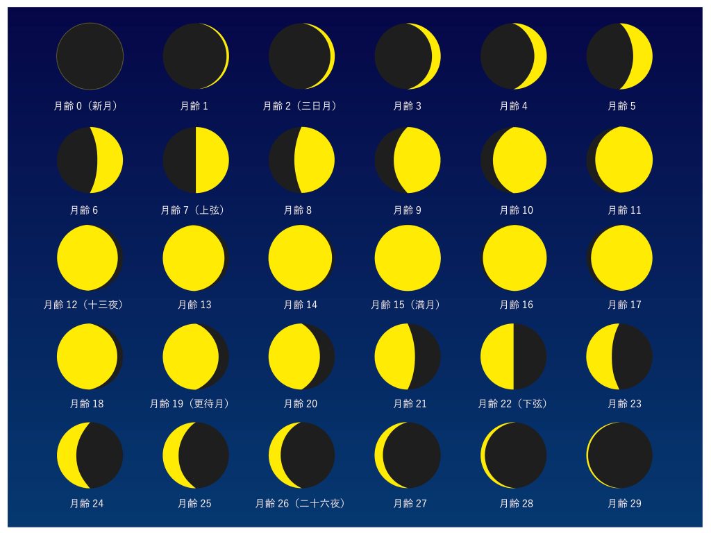 月はおよそ29.5日の周期で満ち欠けをくりかえしています。